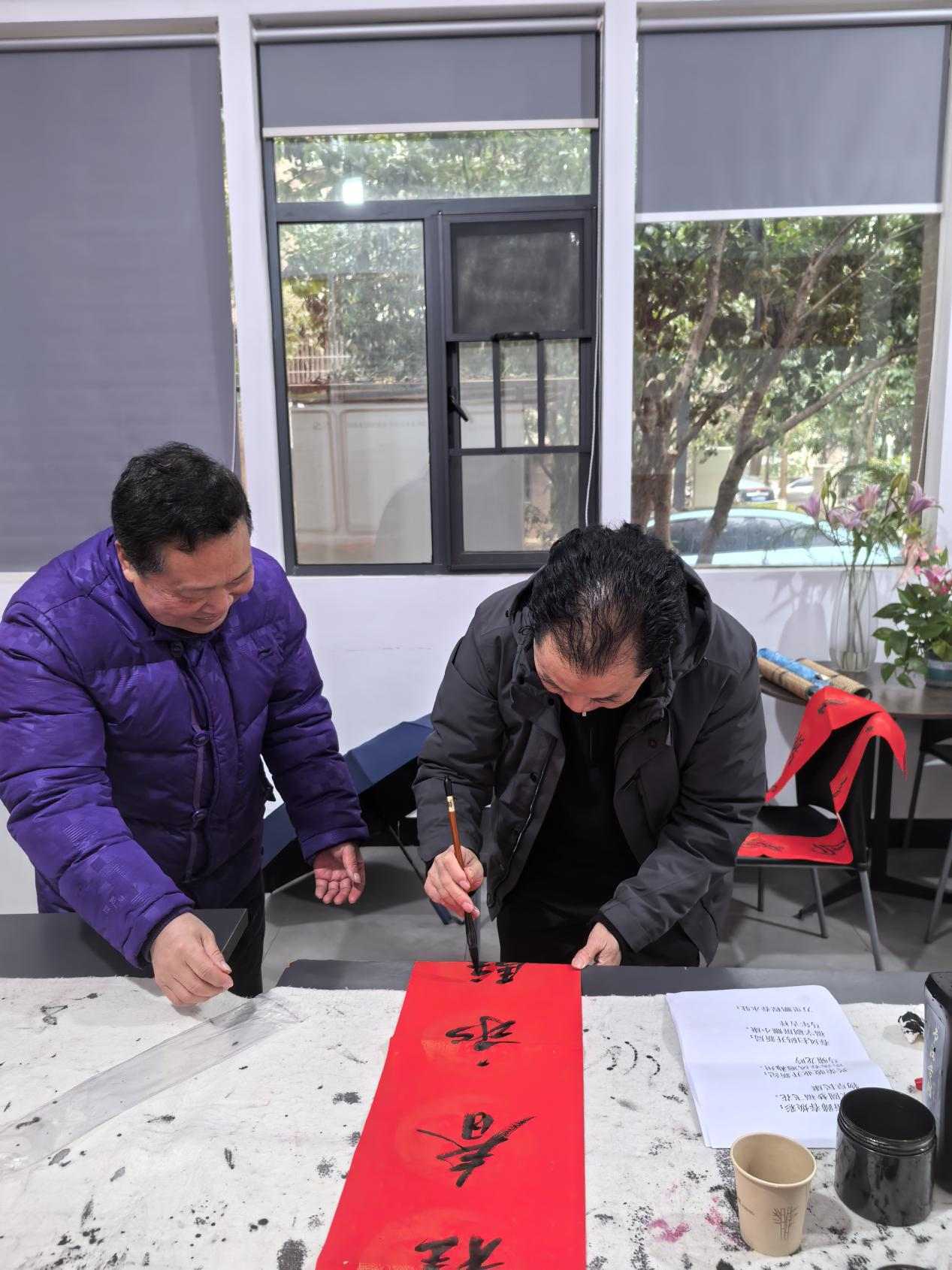 37、2024年,中国书画院副院长曾昭才先生和中国国画院常务副院长谢晓钢先生在长沙劳动路社区写春联送祝福。
