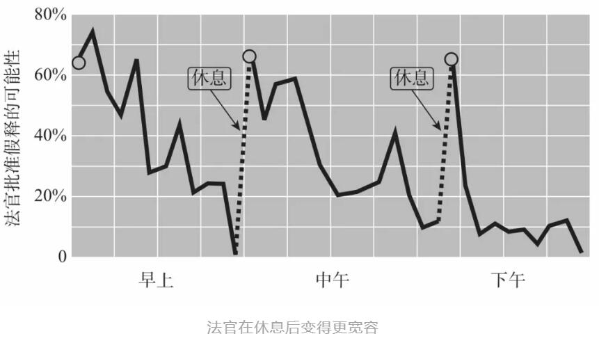 一个本来应该与司法决策和司法本身无关的外部因素,即法官是否能够以及何时可以休息一下,却成了决定囚犯获得自由还是继续留在监狱的关键。