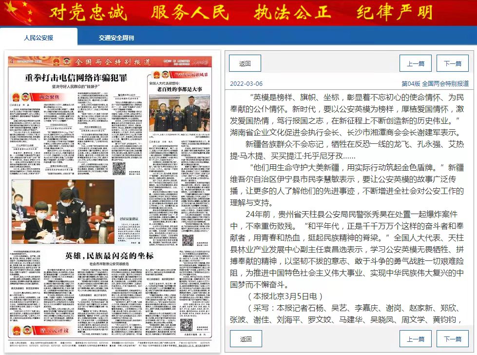 谢建军表示,这些英雄事迹通过媒体广泛宣传,家喻户晓,得到人民群众的高度赞誉。同时,湖南公安机关经常常态化开展“全省最美基层民警”、“全省优秀人民警察”等一系列先进典型评选活动,为全省人民群众崇尚英模、学习英模的营造了一个浓厚的氛围,为湖南公安点赞!