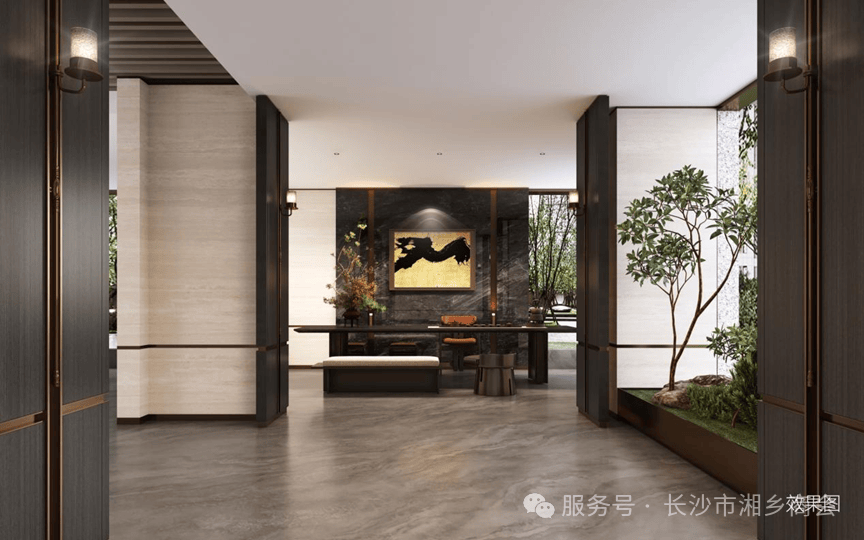 三重臻装入户门楼:地下门厅、首层门厅、私人电梯厅,一进一礼,敬呈归家至高礼序。