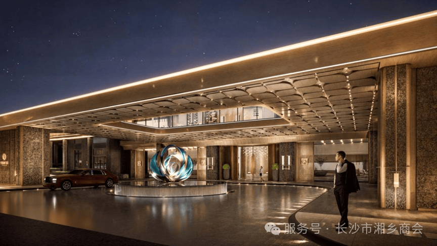 双入户大堂承启尊荣:约270m市政绿轴串联环岛式落客,自然式酒店度假体验。